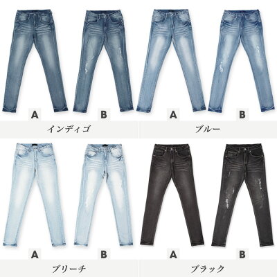 ダメージ スキニー ジーンズ メンズ デニム /roshell(ロシェル) スーパー ストレッチ デニム & クラッシュデニム パンツ/ スキニーパンツ スキニーデニム テーパードパンツ ブリーチ 破れ 膝 切りっぱなし サーフ系 秋服 夏服 春服 冬服