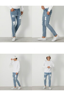CUTTING DAMAGE DENIM SKINNY/カッティングダメージデニムスキニー / AZUL BY MOUSSY/アズール バイ マウジー/メンズ/ボトムス デニムパンツ【MARKDOWN】