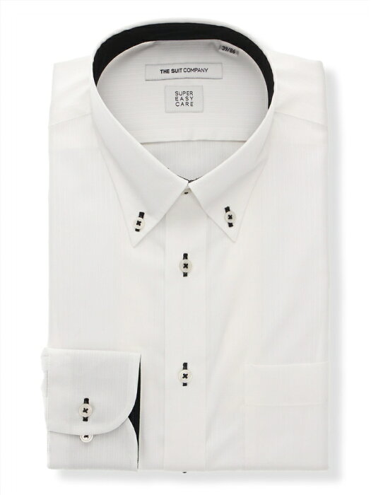 FIT SUPER EASY CARE ボタンダウンカラードレスシャツ シャドーストライプ ホワイト ザ・スーツカンパニー