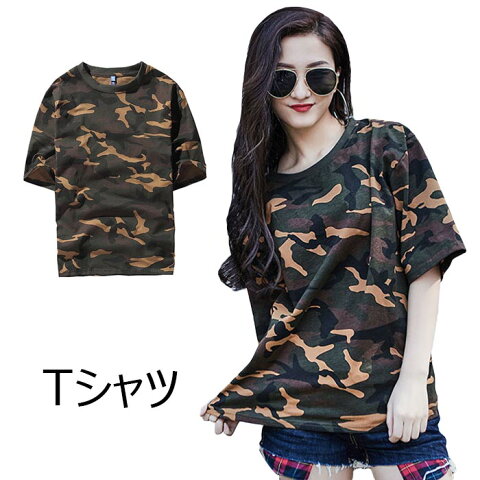 【送料無料】Tシャツ レディース 五分袖Tシャツ 迷彩柄 カモフラージュ柄 個性的 シンプル 上品 カジュアル ゆったり リラックス プルオーバー トップス 春夏 春新作